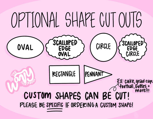 Shop custom and ready-to-ship pop-out signs that are made with two thick paper panels and filled in the middle for added structure and a lifted 3D look. They’re sturdy, eye-catching, and perfect for photo props, party decor, or event signage. You can choose hanging options, fringe edging, and custom shapes to create a piece that fits your event perfectly.